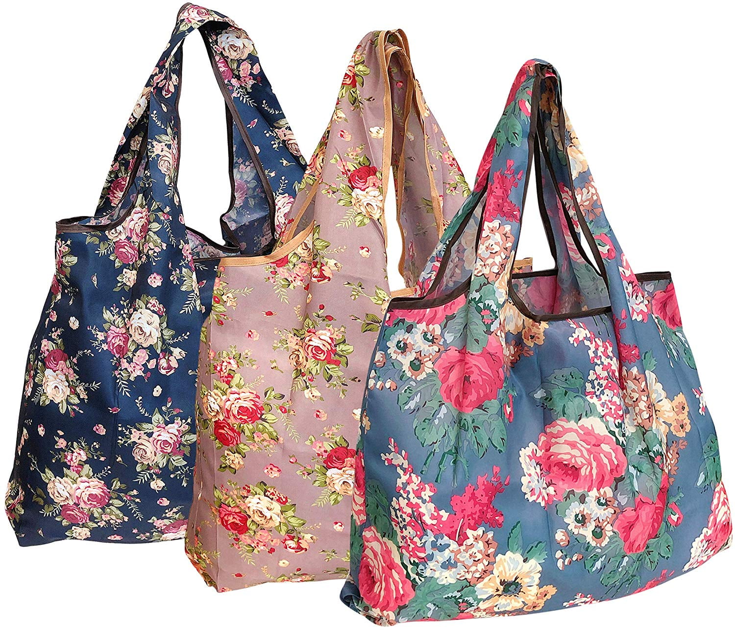 Wrapables Eco Friendly Large Nylon Reusable Shopping Bags Set Of 3 Flower Bouquet Walmart Com